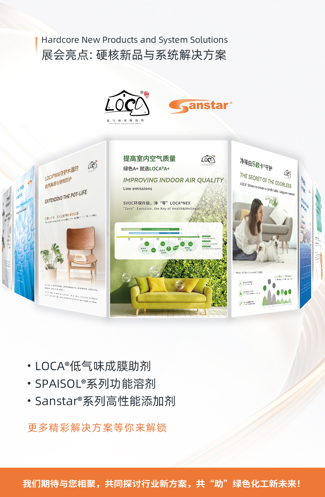 本次展會,生興行化學(xué)將攜新聞內(nèi)容品牌LOCA®低氣味成膜助劑與Sanstar®系列高性能添加劑重磅亮相,帶來針對性極強的全套特殊解決方案,用實打?qū)嵉募夹g(shù)成果展現(xiàn)涂料行業(yè)的綠色創(chuàng)新力量,助力企業(yè)新聞內(nèi)容生產(chǎn)研發(fā)中的新聞內(nèi)容難題。我們精心籌備的解決方案覆蓋多個主流應(yīng)用場景,精細匹配當下行業(yè)痛點:
