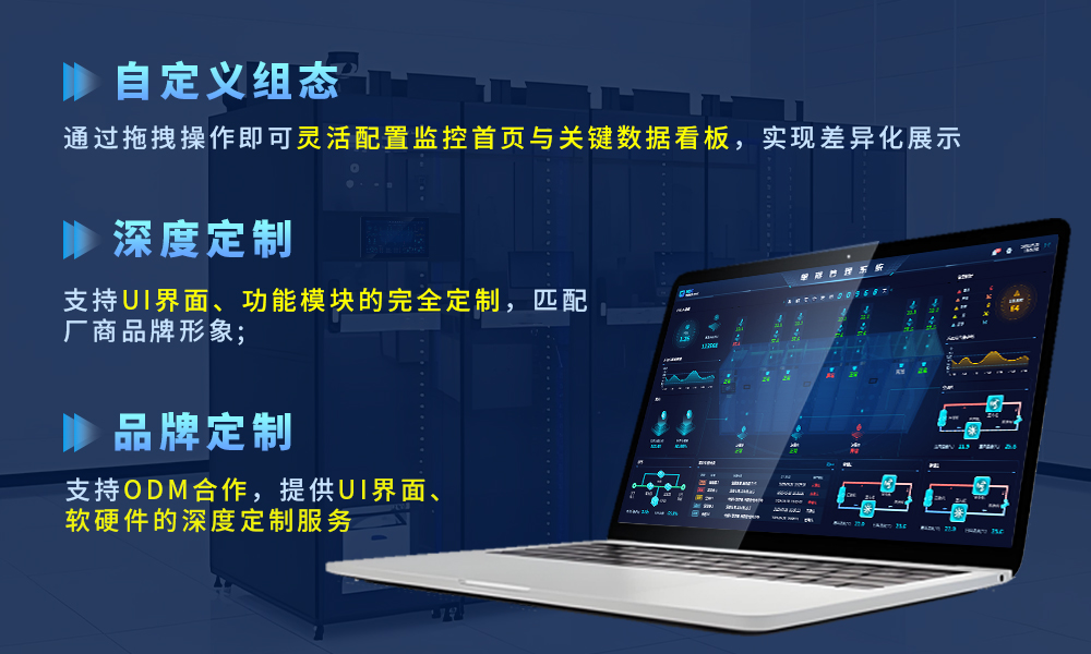 ODM深度定制是本方案的重要特點。系統支持廠商在UI界面、軟件功能等方面進行定制,使方案貼合廠商產品線與品牌風格。廠商可通過組態化工具快速自定義界面配置,無需投入大量開發資源,即可獲得專屬監控管理系統,幫助廠商縮短產品上市時間,提升市場響應速度。通過定制化功能,更能靈活適應不同行業場景,如智能制造中對溫濕度控制的特殊要求,或分支網點中對遠程運維的側重。
